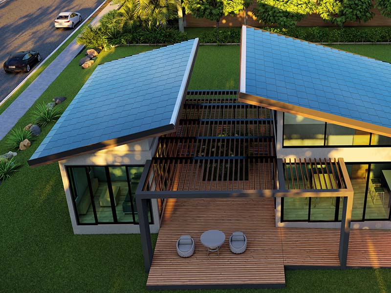 ♦ Firm and Stable, Each tile has Z-shape windproof components and the purlines are made of anti-corrosive pines which make it superior in wind-resistance.